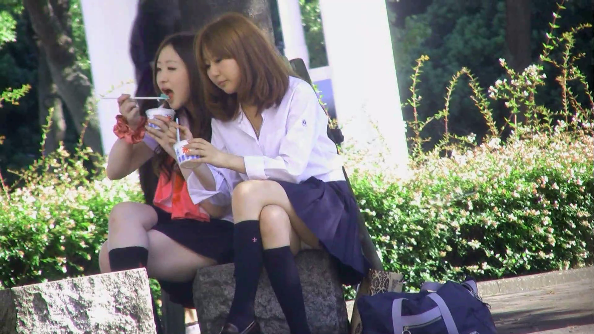 First video installment where a Japanese pervert secretly records Japanese schoolgirls’ accidental exposures while they are sitting down in very short skirts.